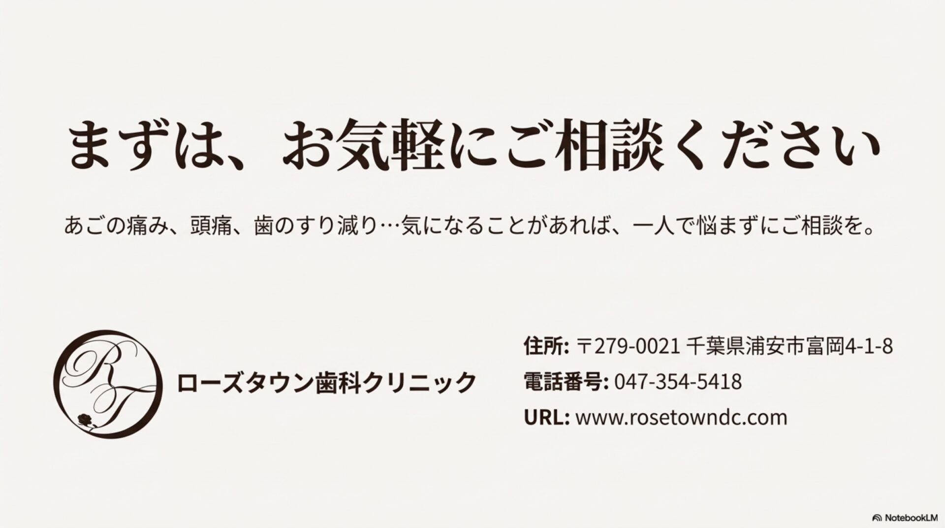 あなたの身体は、口を通して何を伝えようとしているのでしょうか? 日々の小さなストレスのサインに、少しだけ耳を傾けてみませんか。その小さな気づきが、心と身体の健康を守るための大きな一歩になるかもしれません。