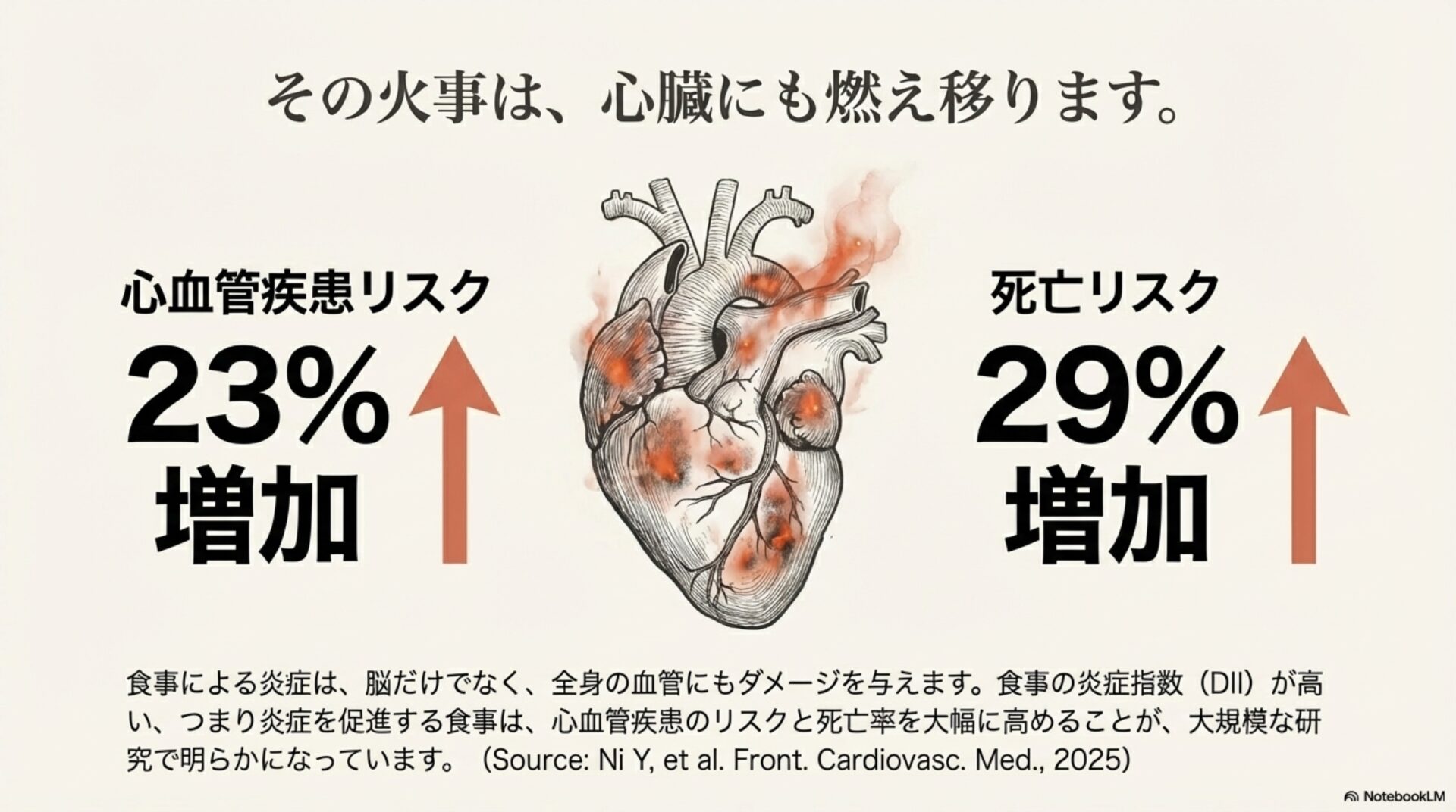 つまり、抗炎症作用のある食事で腸内環境を整えることは、脳だけでなく、私たちの生命を支える心臓を守るための、最も強力な戦略の一つなのです。