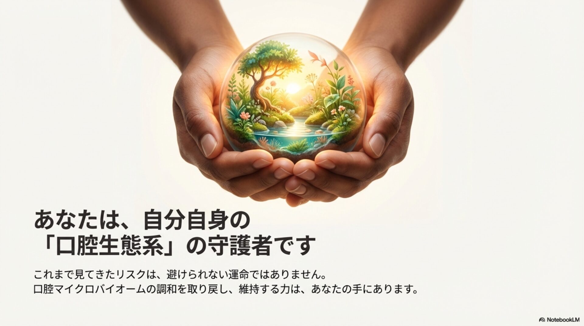 私たちの口腔の健康は、全身の健康から切り離されたものではなく、私たちがどのように年を重ねるかという物語そのものと深く結びついています。口の中の微生物たちは、私たちの健康状態や老化の軌跡に関する、静かな語り部なのです。