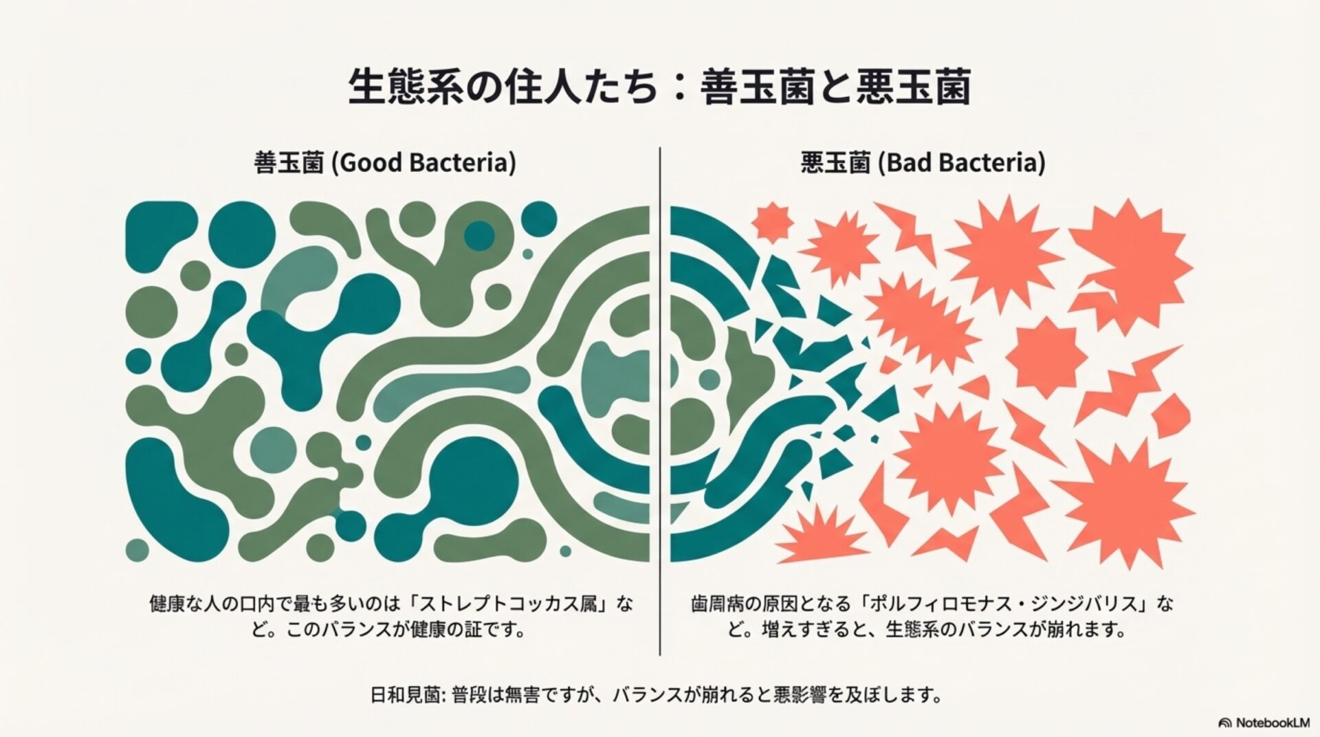 この地図の地形は年齢とともに変化し、特定の細菌の過剰な増殖といった「目印」は、私たちがフレイルや疾患といった回り道に向かっているサインかもしれません。この記事では、この口の中の地図を読み解き、そこに生息する細菌が私たちの老化とどう深く関わっているのか、科学が明らかにした最も魅力的な発見をご紹介します。