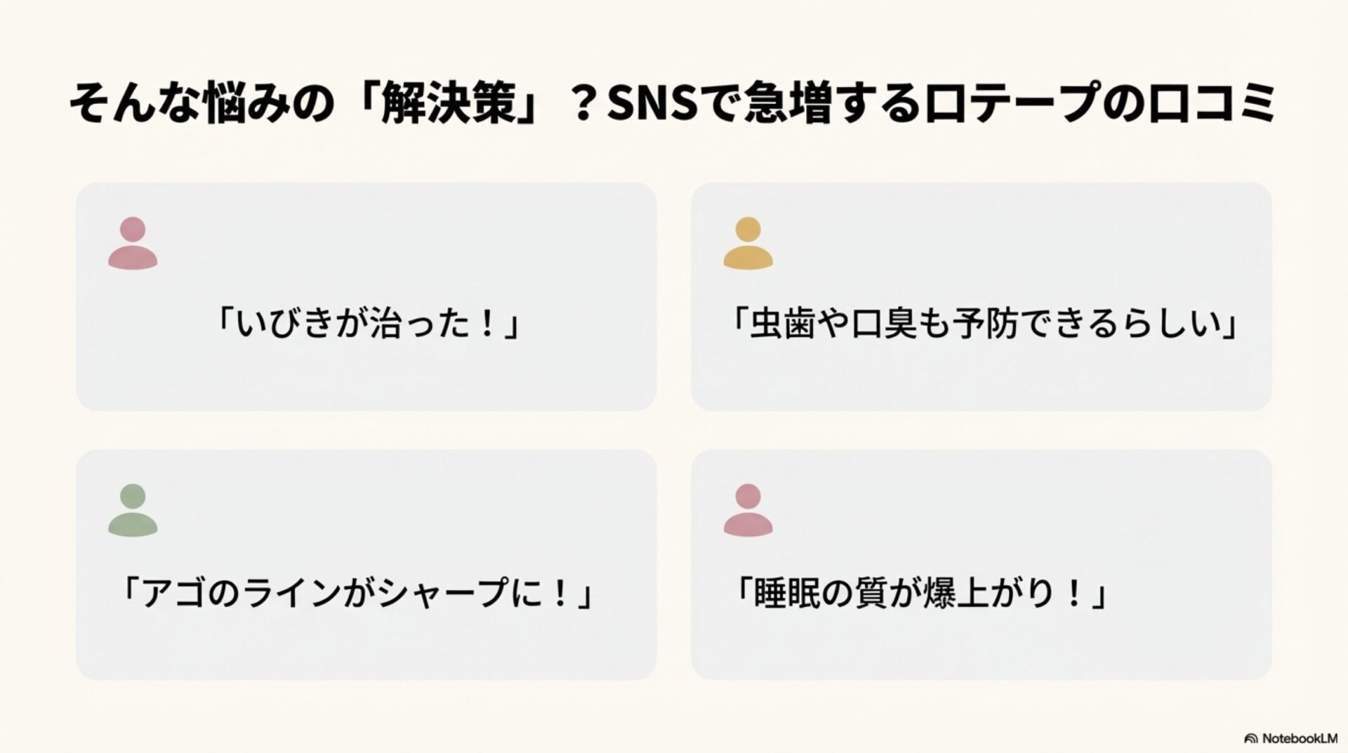これらのアイデアは、鼻呼吸がもたらす既知のメリットから類推されたものと考えられますが、口テープ自体がこれらの口腔健康上の効果を直接もたらすという証拠は、現時点では存在しないのです。