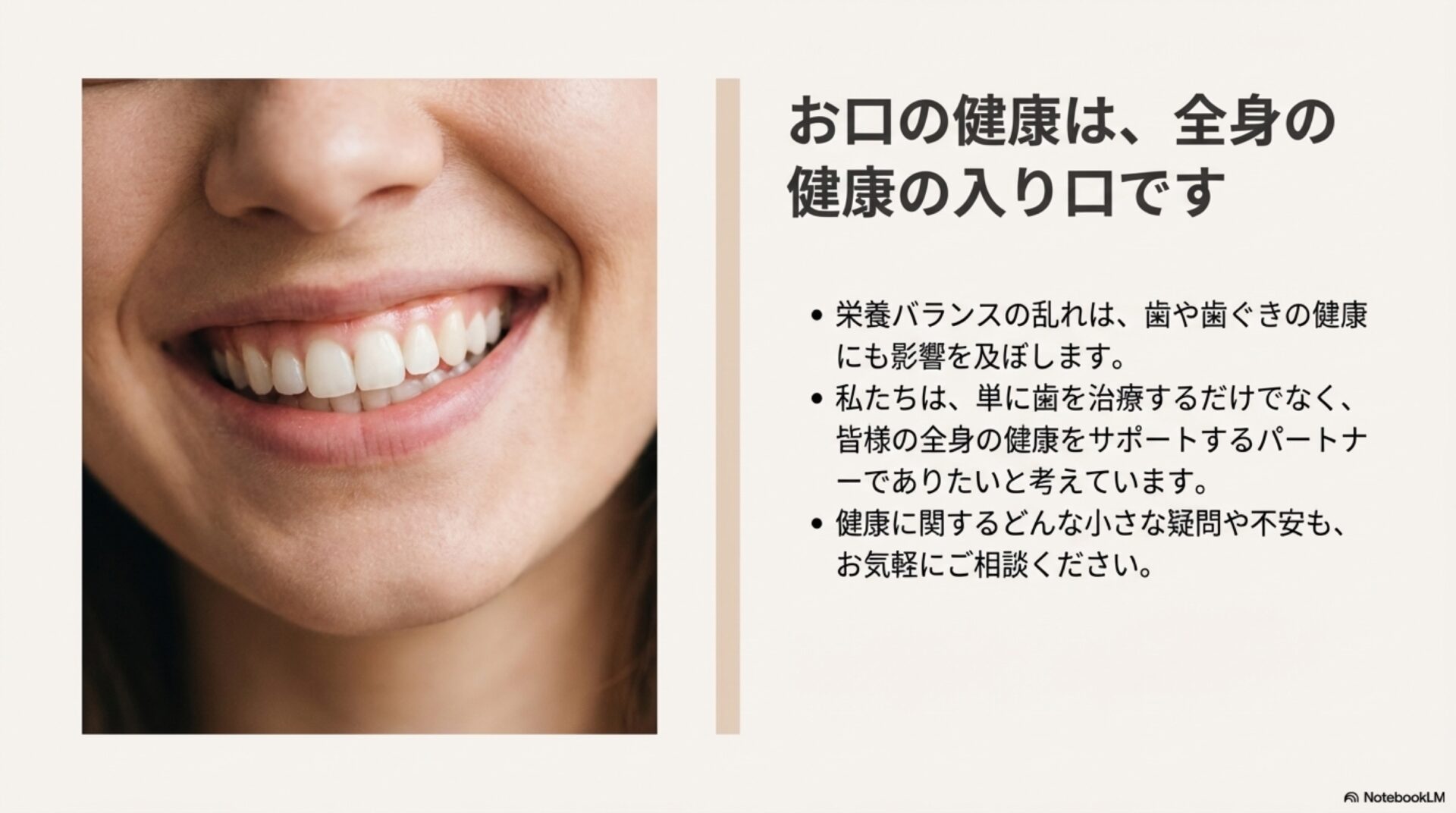 最後に、一つ考えてみてください。 「食事から何かを取り除く前に、その代わりに何を加えるのか、その質について考えることも同じくらい重要なのではないでしょうか?」
