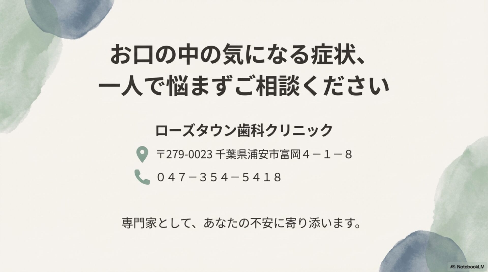 あなたを悩ませるその症状の改善に足りなかったのは、もしかしたら身近な栄養素かもしれません。気になる症状があれば、自己判断せずに専門の歯科医師に相談し、最適な診断と治療法を見つけることが大切です。