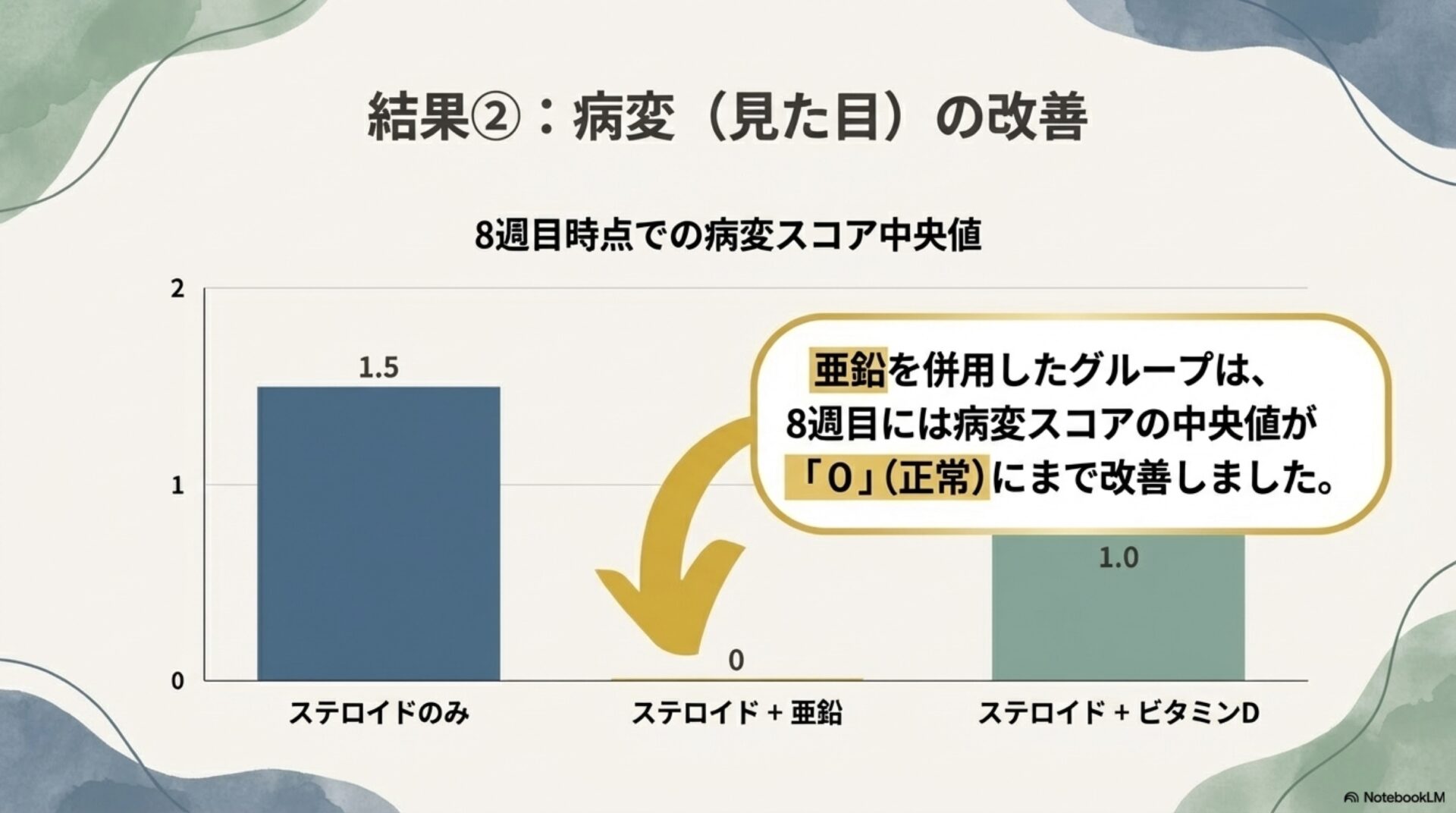最大の発見:治療効果を飛躍させたのは「亜鉛」だった