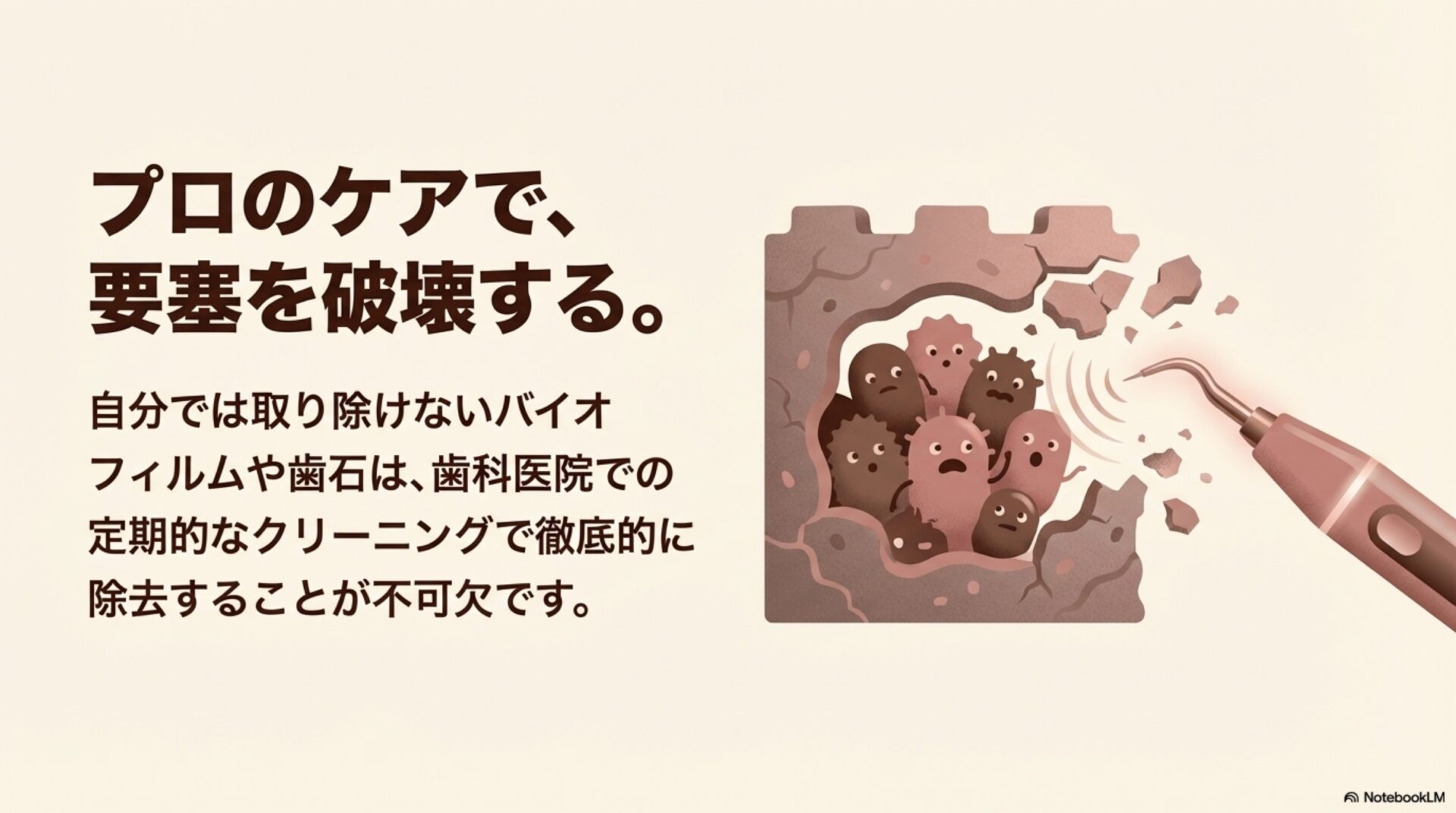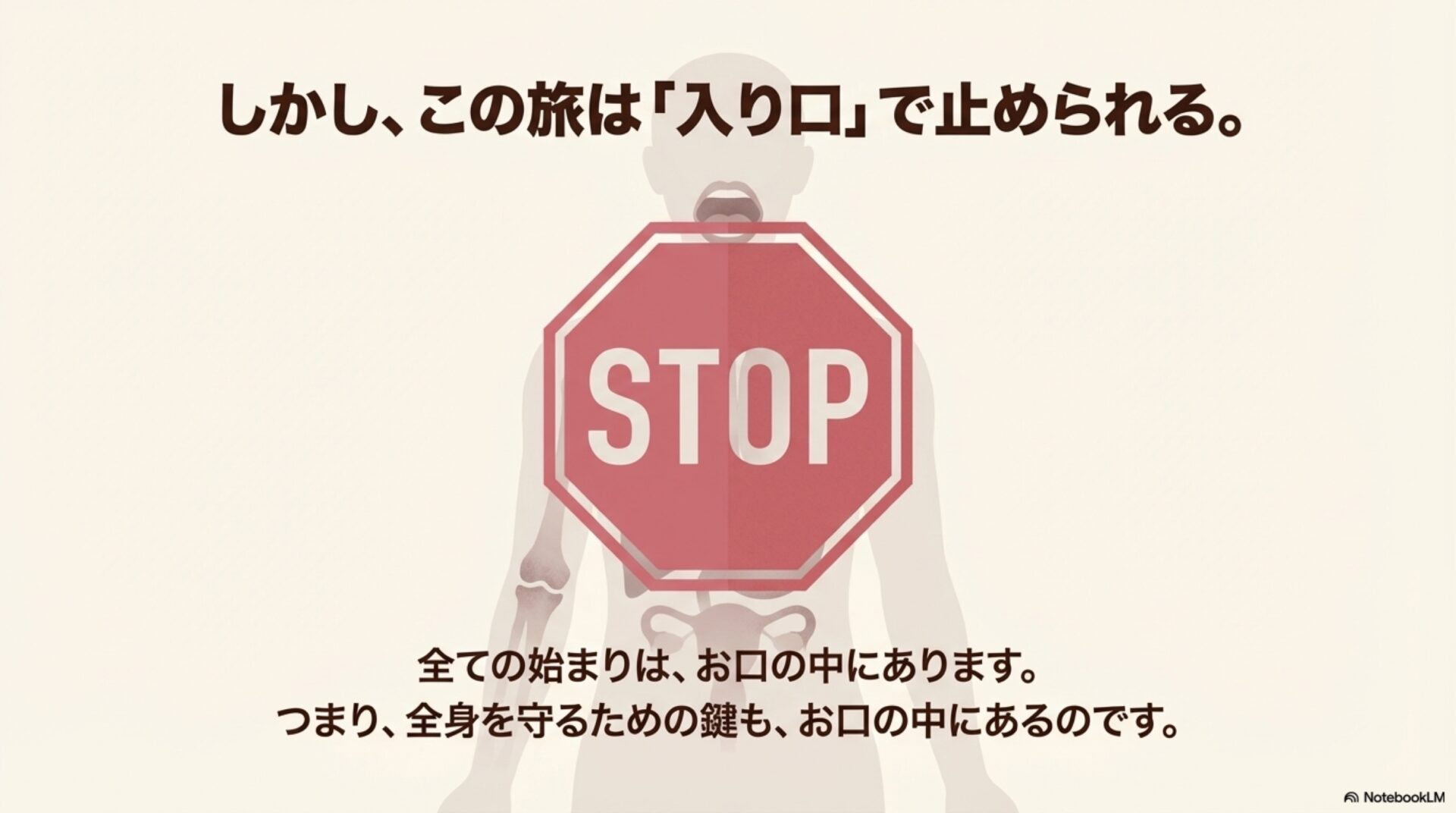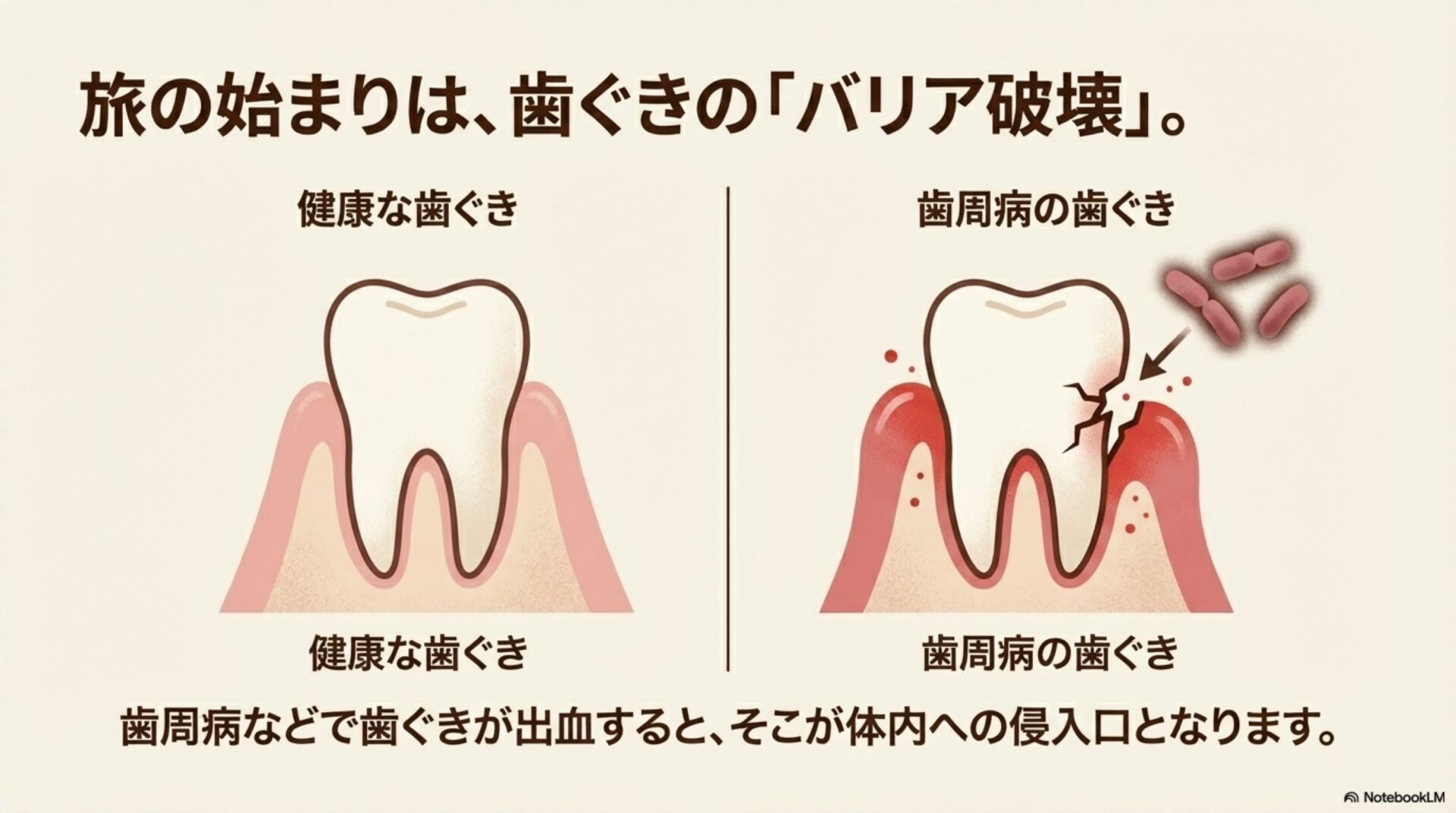この記事で見てきたように、フソバクテリウム・ヌクレアタムという一般的な口内細菌は、「越境病原体」として全身の健康に深刻な影響を及ぼす可能性を秘めています。この発見は、口腔ケアに対する私たちの考え方を大きく変えるものです。