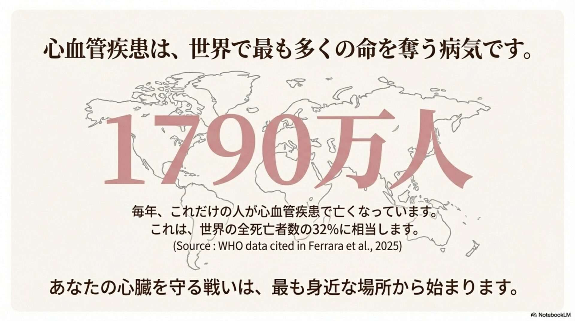 毎日歯を磨くのは、虫歯や歯茎の病気を防ぐため――これは誰もが知っている常識です。しかし、もしその歯磨きが、あなたの心臓の健康にも直接関わっているとしたらどうでしょうか?実は、口の中の健康、特に歯茎の状態は、全身の健康、とりわけ心血管系の健康と深く結びついていることが、科学的に明らかになってきています。そして、このつながりは非常に重要です。なぜなら、心血管疾患は依然として世界で最も多い死因であり続けているからです。