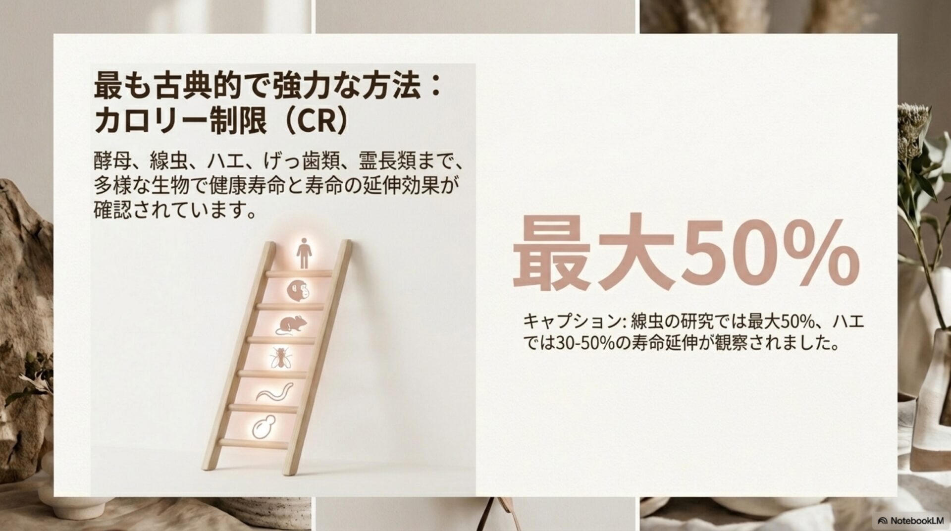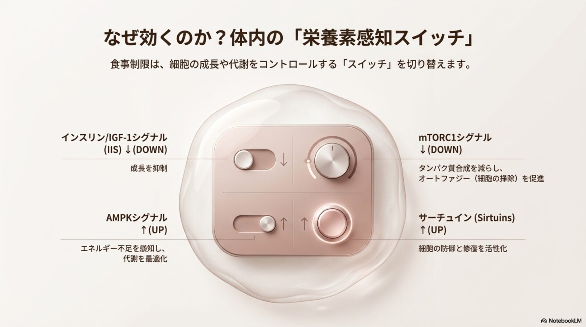 科学の世界では、健康寿命を延ばすための最も確実な介入方法の一つとして、「食事制限(Dietary Restriction, DR)」が長年研究されてきました。これは単にカロリーを減らすだけでなく、何を、いつ食べるかといった、より幅広いアプローチを含みます。