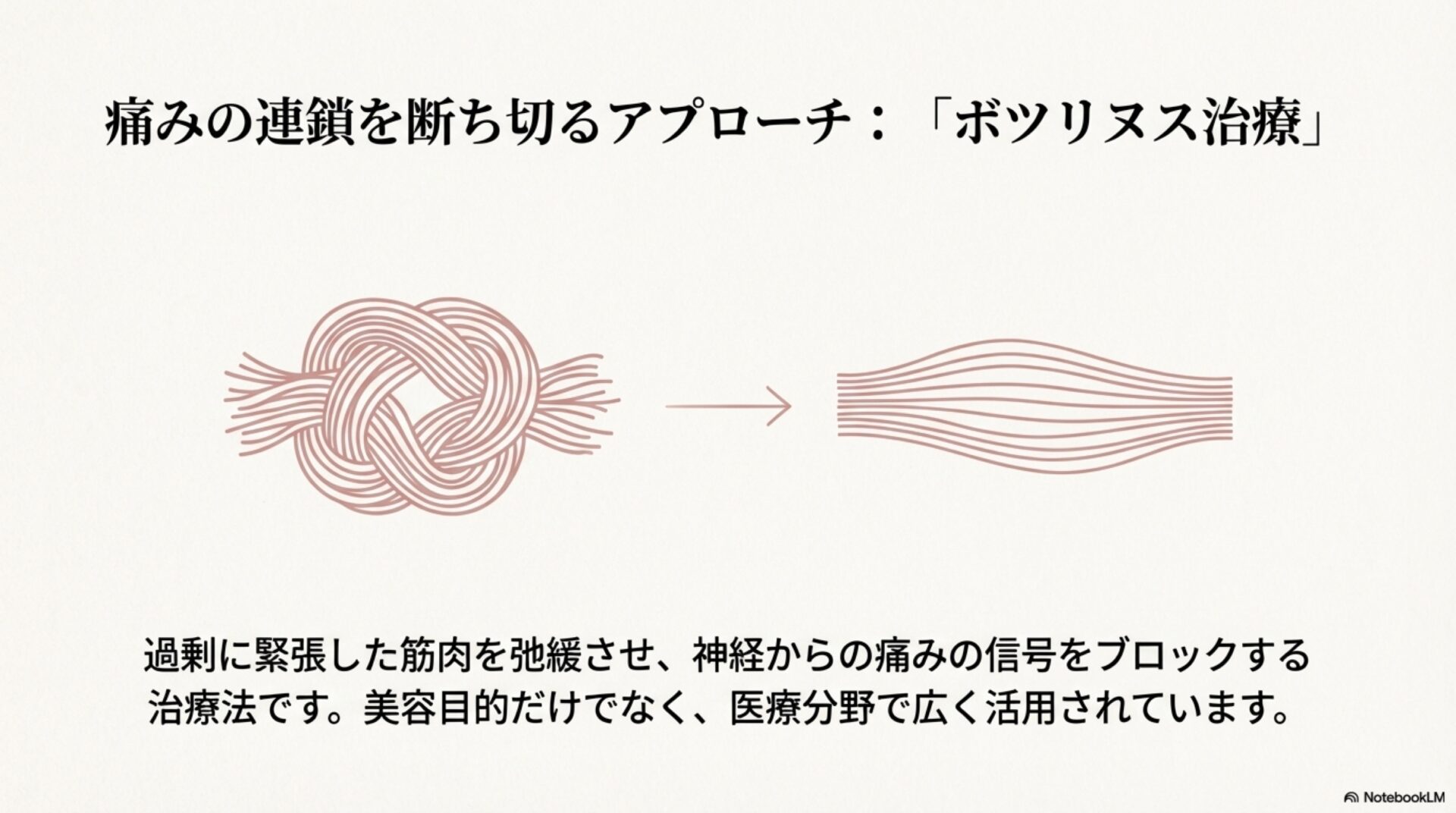 では、どうすればこの二つの問題を同時に解決できるのでしょうか。そこで注目されているのが、「ボツリヌス療法」(一般的にはボトックス治療として知られています)です。これは慢性片頭痛の予防治療としても用いられるもので、歯ぎしりと頭痛の両方に悩む患者さんにとって、大きな希望となる可能性を秘めています。
