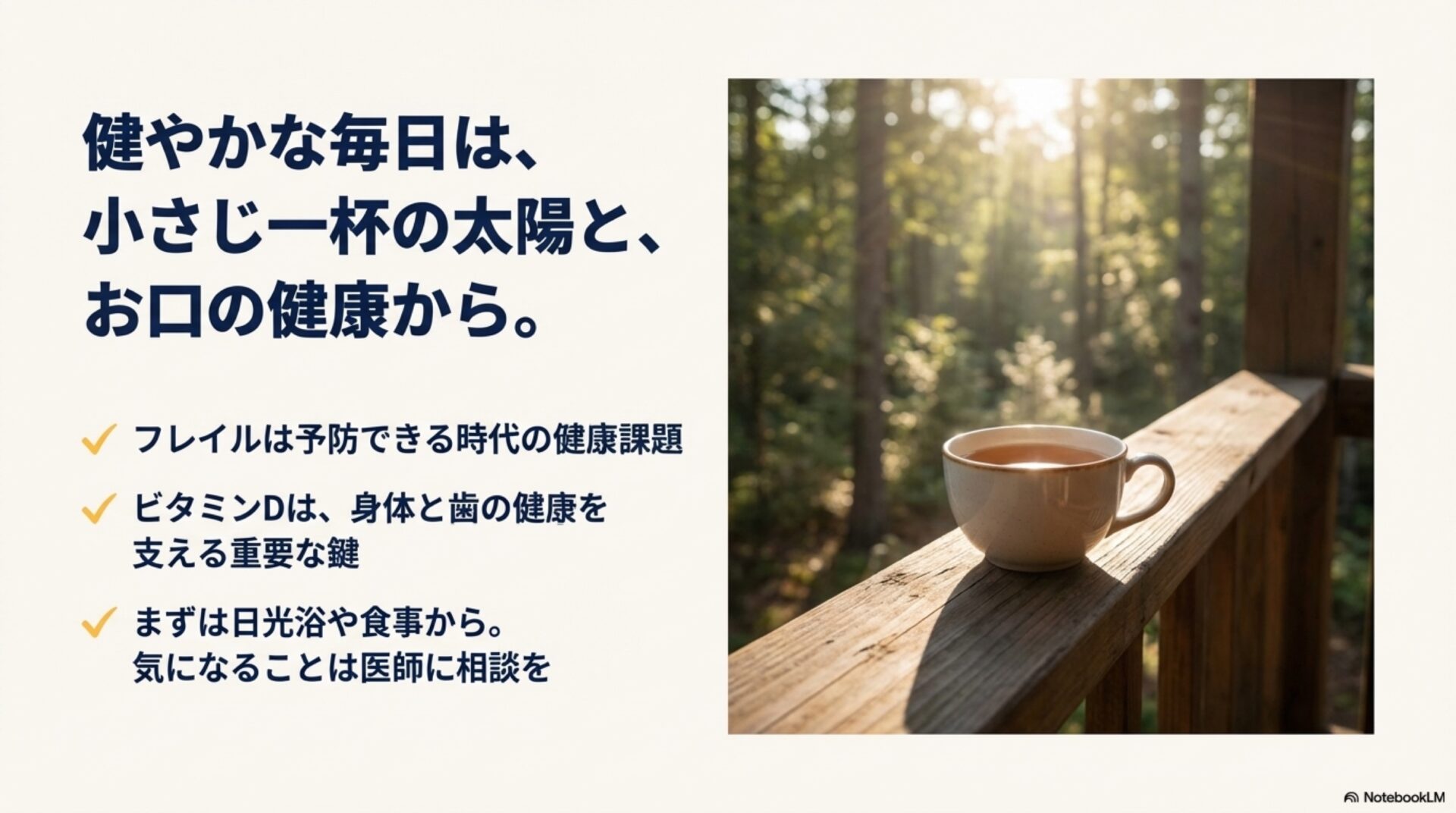 まとめ:これからの健康を「太陽のビタミン」と共に考える