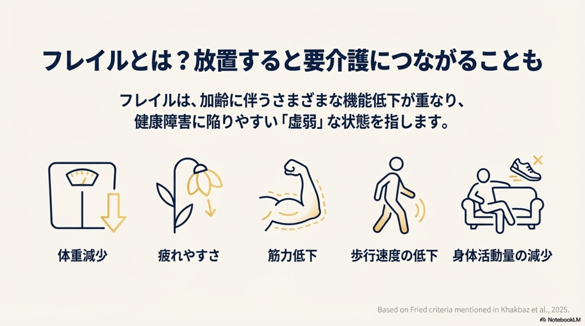 ポイント1:「フレイル」とは?単なる「老化」とは違います