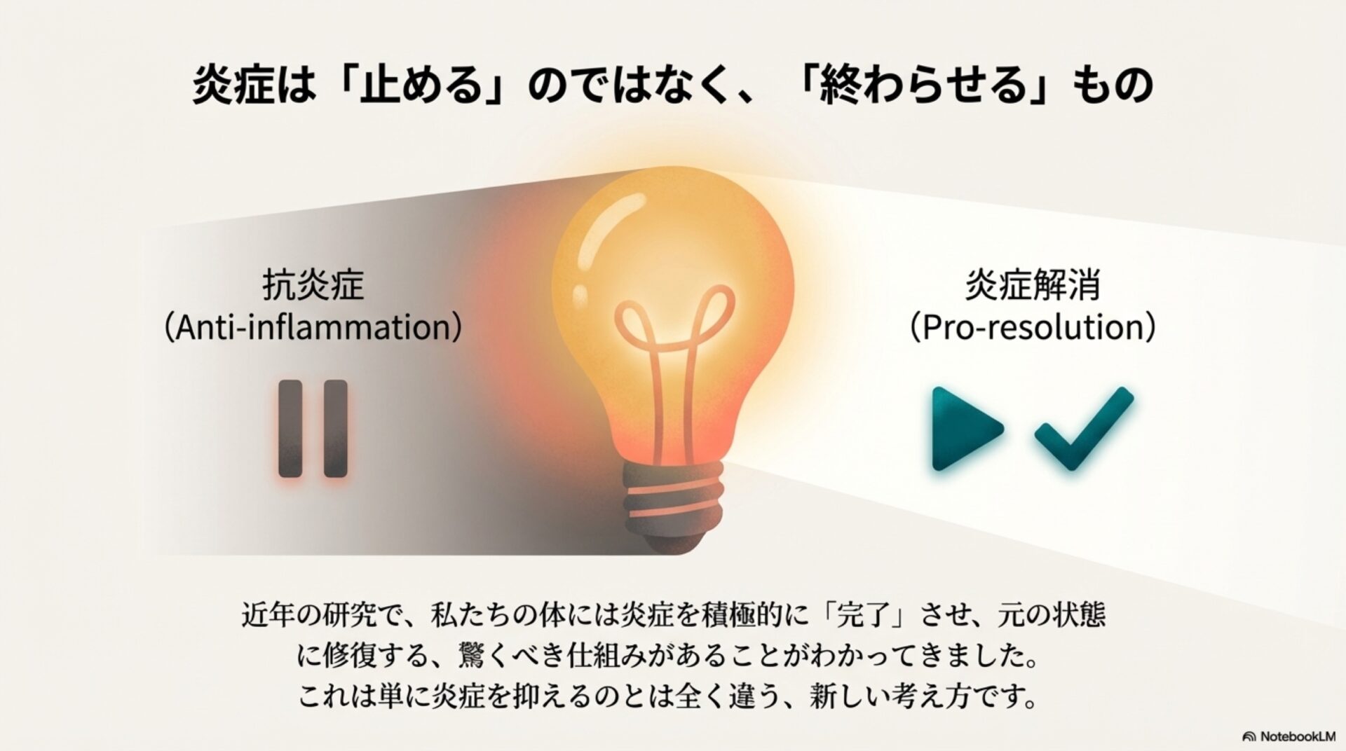 驚くべき事実3:炎症を「止める」のではなく、「終わらせる」という革命的な考え方