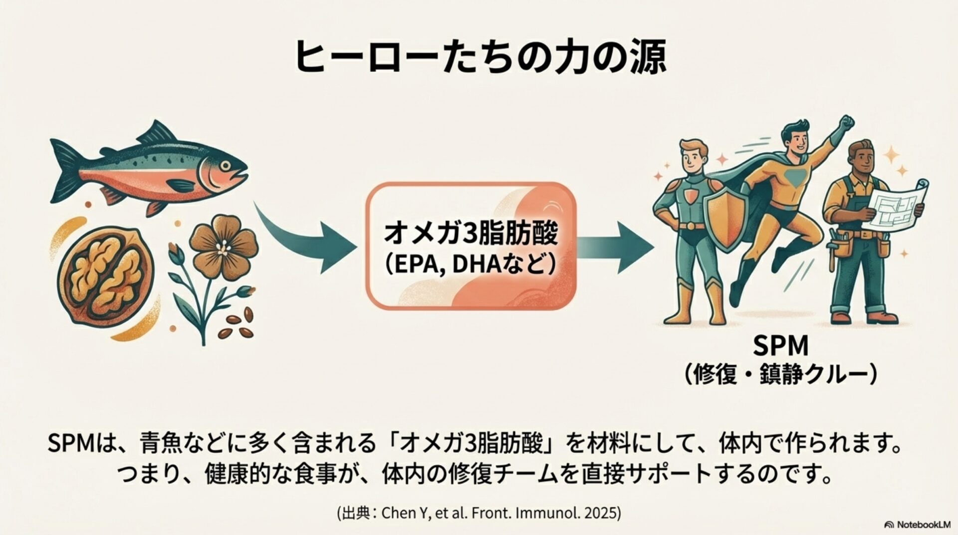 この旅を通して、私たちの体内に存在する「スーパー回復物質」SPMの5つの驚くべき事実を見てきました。