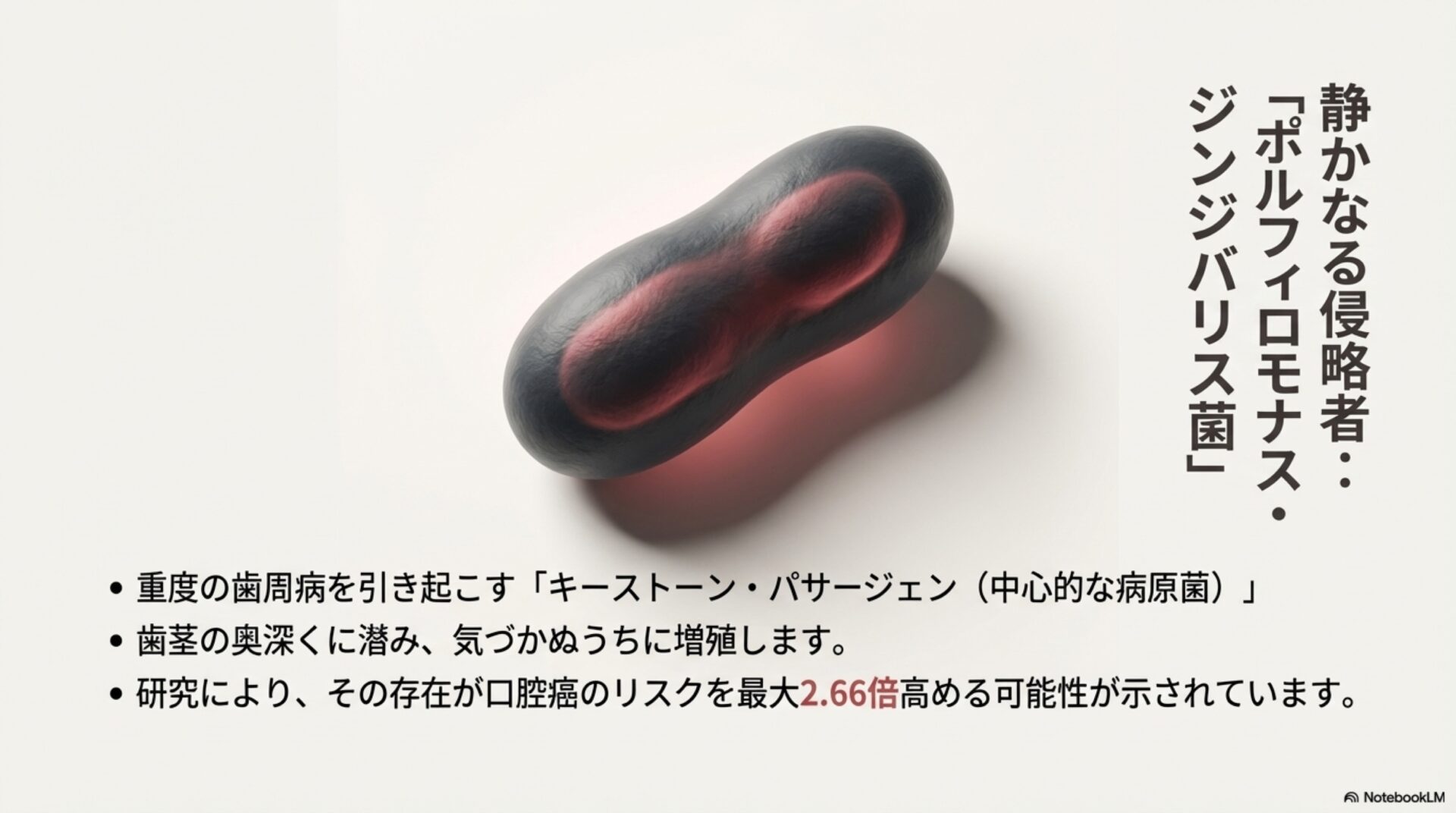 最新の研究から明らかになった、歯周病菌が私たちの体を巧みに操り、がんのリスクを高める「4つの手口」を、分かりやすく解説します。