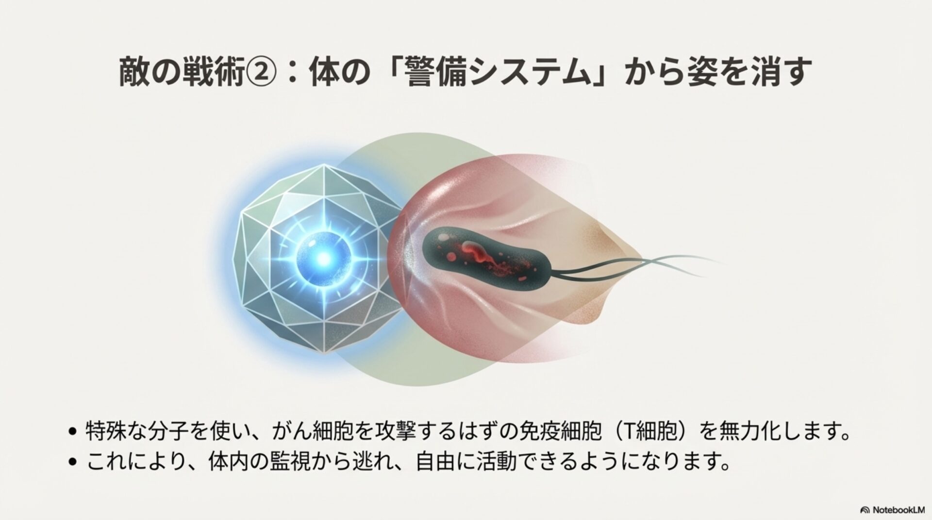 2. 免疫システムを欺き、がん細胞に「隠れみの」を着せる