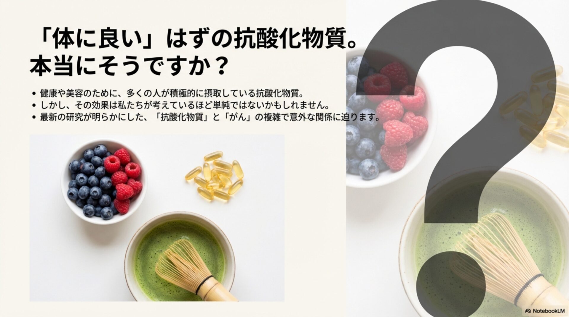 アドバンス慢性炎症/歯周病/根尖病変/口腔がん栄養医学/栄養療法/食事/抗加齢はじめに:あなたの健康常識、覆しますビタミンCやビタミンEなどの「抗酸化物質」は、体をサビつきから守り、がん予防にも役立つ——。多くの人がそう信じて、健康のためにサプリメントを日常的に摂取しているのではないでしょうか。しかし、その常識が覆る...