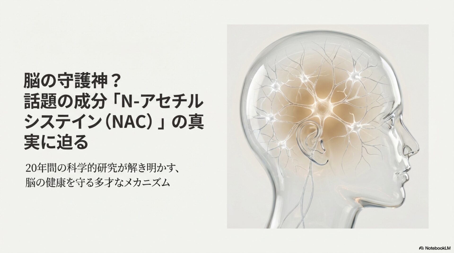アドバンス栄養医学/栄養療法/食事/抗加齢はじめに:身近な薬に隠された、脳への意外な効果咳を鎮めたり、痰を切れやすくしたりする薬の成分として知られる「N-アセチルシステイン(NAC)」。実はこの成分、アセトアミノフェン(解熱鎮痛薬)中毒の解毒剤としても使われる、医療現場で非常に重要...